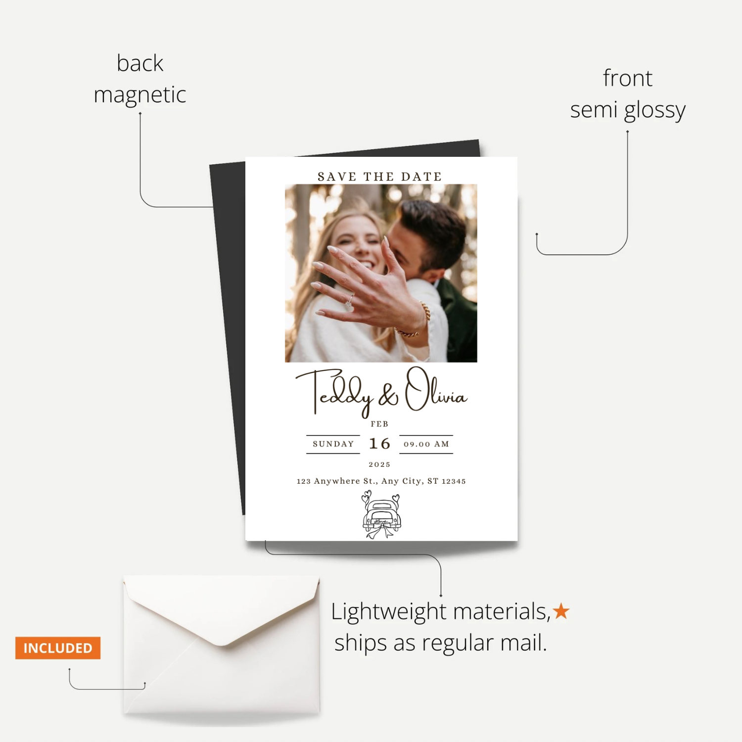 Start your love story off in style with Magmories Save the Date Photo Magnets. A beautifully handcrafted way to announce your big day. More than just a reminder, these elegant photo magnets are keepsakes your guests will actually want to keep.
